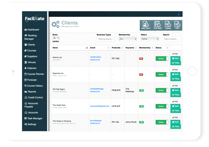 Facilitate CRM empowers the complete management of all training provider back office administration, as well as the entire lifecycle of the courses you run.