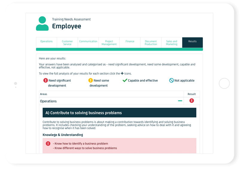 The Facilitate Training Needs Analyser (TNA) tool helps you to optimise your workforce and staff for peak performance and productivity by arming you with the information required to ensure you deliver the right training to upskill your employees.