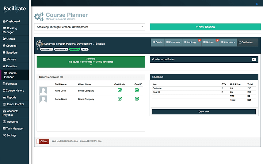 Facilitate Suite enables you to manage the entire lifecycle of running courses – from course creation, through to enrolments and certification.